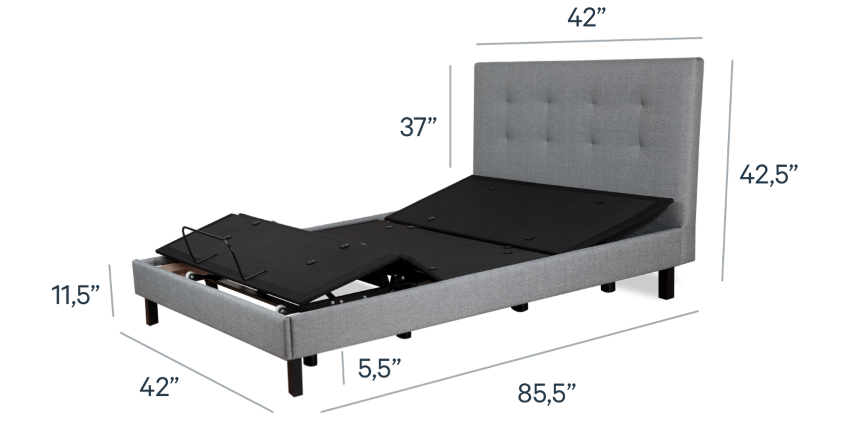 Améliorez la qualité de votre sommeil sans effort grâce à cette superbe base de lit rembourrée et fonctionnelle. Relevez la tête et le pied du lit par la simple pression d'un bouton pour prévenir les maux de dos et le ronflement, ou encore vous détendre confortablement au lit.