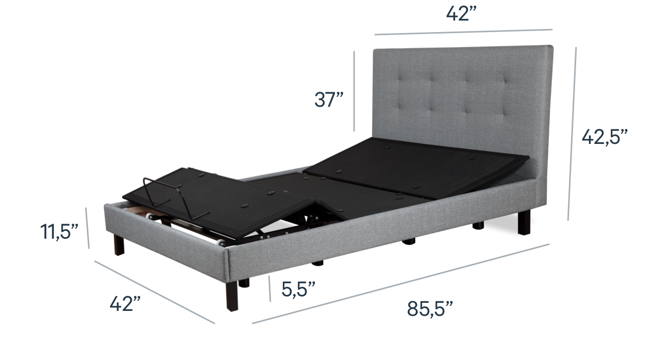 L'élégante base et tête de lit rembourrée de ce lit ajustable agrémentent tout décor.